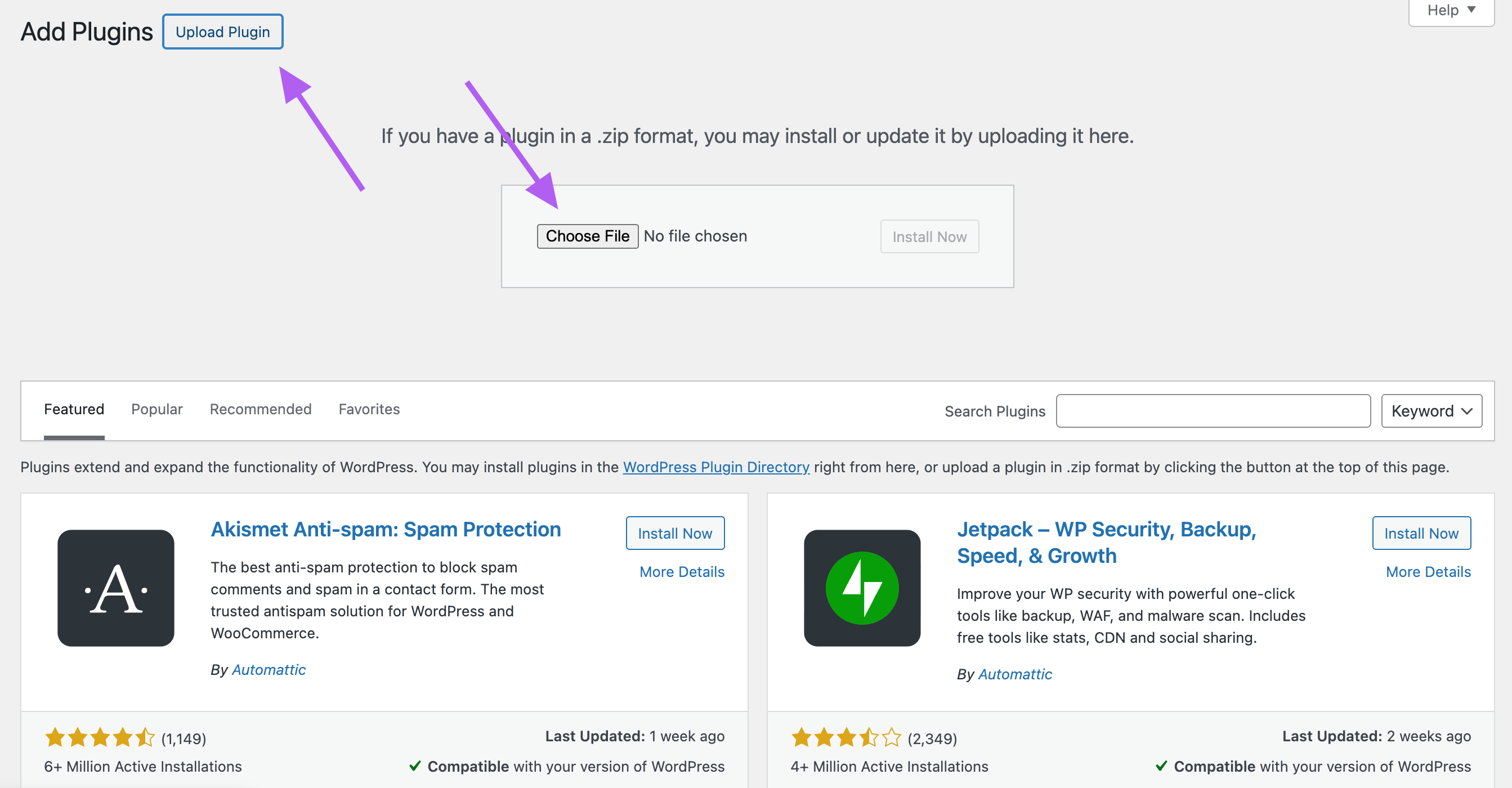 To get started installing our plugin, first you need to download the zip file for it here. Once it's downloaded, the next step is to upload it to the plugin portion of your Wordpress website.